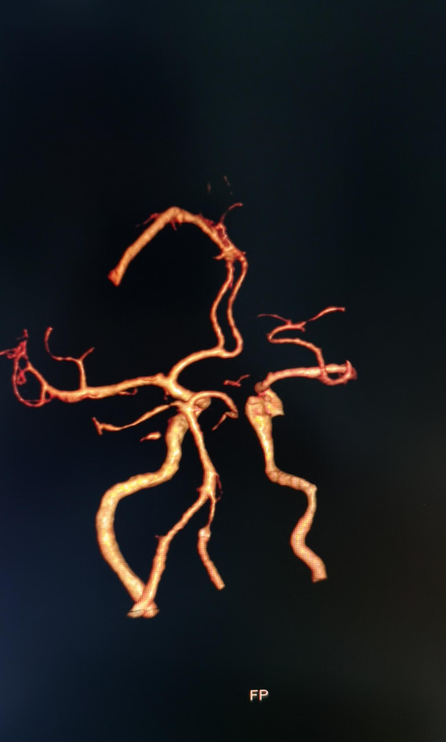 2022年1月25日,新年即将来临,一位45岁的男性患者因反复头痛症状到我院就医,经过CT平扫初步诊断血管瘤?脑梗塞?亟需通过颅脑CTA进一步明确诊断。