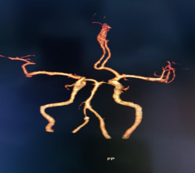 医院放射科专家在检查前做了充分的准备,包括对比剂的选择和注射参数、机器扫描程序和参数设定、跟病人交代检查注意事项等。然后按照相应的操作程序对患者实施检查,扫描完成后对图像进行处理,做出了精美的颅脑血管图像,同时对各条血管进行拉直和分析,最终做出了准确的诊断。该检查为我院首例颅脑动脉CTA检查,成功开展后为患者进一步治疗提供了影像学依据,有助于临床医生直观、准确地判断病情,为给患者制定合理的治疗方案提供了强有力的支持。