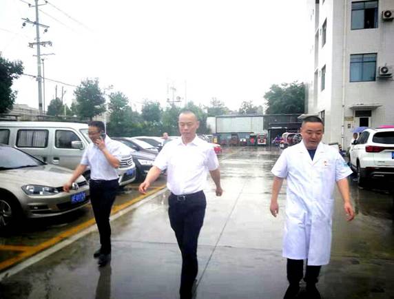 7月22日下午县委书记苏刚同志、县委办主任吴军同志一行冒雨到我院视察医院工作,县卫健局书记、局长周波同志、院长王西云同志、副院长陈恒同志陪同。