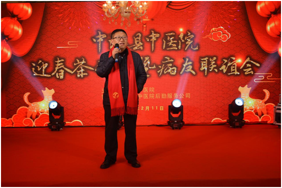 2018年2月11日上午,中江县中医医院肾病血透患者迎春茶话团拜会在我院召开。在团拜会上,林祥森院长向各位肾病血透患者致以新春致辞。林院长指出,中江县中医医院搬迁以来,各方面工作蒸蒸日上,成绩斐然。在此感谢各位患友对中医医院的信任,中医医院将继续竭诚为各位患友、为全县的人民群众服务,大力提高医院学术水平,拔高业务能力,凸显中医药特色优势,微笑服务,温馨服务,贴心服务。在新的一年来临之际,希望中医医院越来越好,希望各位患友越来越好,同时希望大家给我院提出更多更好的建议。最后祝大家新年如意,阖家欢乐。参会的肾病患友们感谢中医医院的精湛医术和无微不至的关怀,深感在院如在家,同时也感谢以林院长为核心的医院领导班子和全体医务人员对患者的关爱和祝福,也祝愿中医医院新的一年里再创佳绩,越办越好。