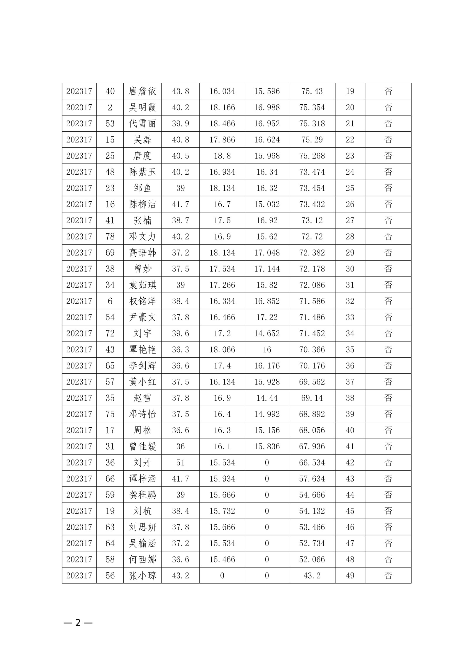中江县中医院公开招考非在编工作人员成绩及体检公告
