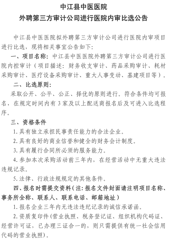 中江县中医医院外聘第三方审计公司进行医院内审比选公告
