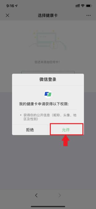 2.点击“电子健康卡”→“绑定健康卡”→“允许”授权